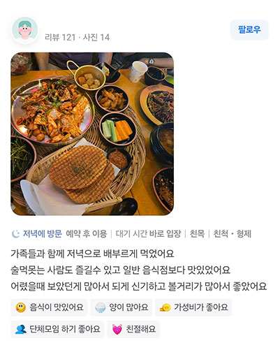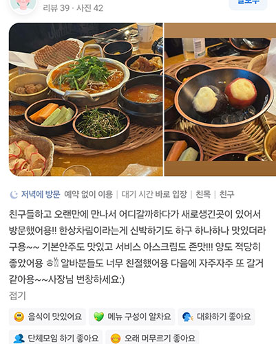 이모집 따뜻한 정과 푸짐한 한상차림